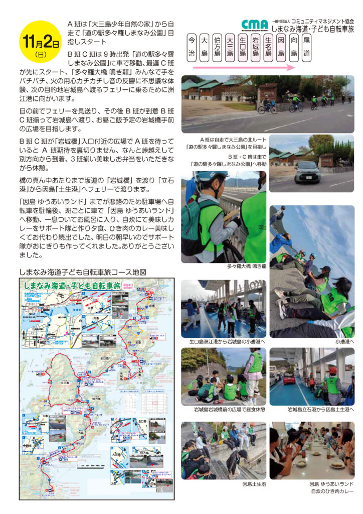日程10月31日( 金) ~ 11月3日(月祝) 船1泊しまなみ海道の島2泊(3日間約100km 走破)